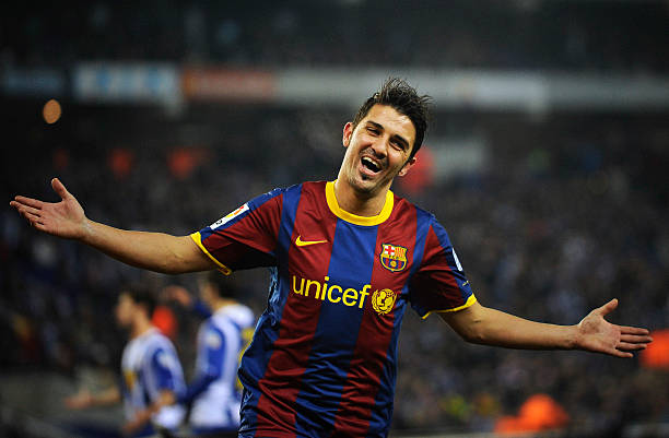 BARCELONA, SPANYOL – 18 Desember: David Villa dari Barcelona merayakan setelah mencetak gol kelima timnya. Pertandingan La Liga antara Espanyol dan Barcelona di stadion Cornella – El Prat pada 18 Desember 2010 di Barcelona, ​​Spanyol. (Foto oleh David Ramos/Getty Images)